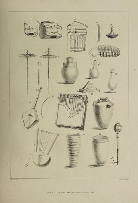 In 1831 a group of objects acquired in the Asante Empire and Gabon entered the British Museum collections (fig. 1).1 These items—perhaps the first art from sub-Saharan Africa to enter the British Museum—include clay pipes, colorful glass beads, an iron lock and key, an iron and brass blade and a brass-wrapped wooden sheath, a leather cushion with kapok fiber stuffing, a tasseled leather bag, a stringed instrument, sandals, a carved wooden stool, plain woven cotton, and stamped adinkra cloth. Although the British Museum formally added them to their collection only in 1831, these objects had been at the institution since 1818, when the Englishman Thomas Bowdich presented them to the museum.2 Bowdich had acquired these items while on an 1816–18 “mission” sponsored by the British-chartered Company of Merchants trading to Africa—the African Company—centered on an 1817 journey to the Asante capital of Kumase (Coomassie).3